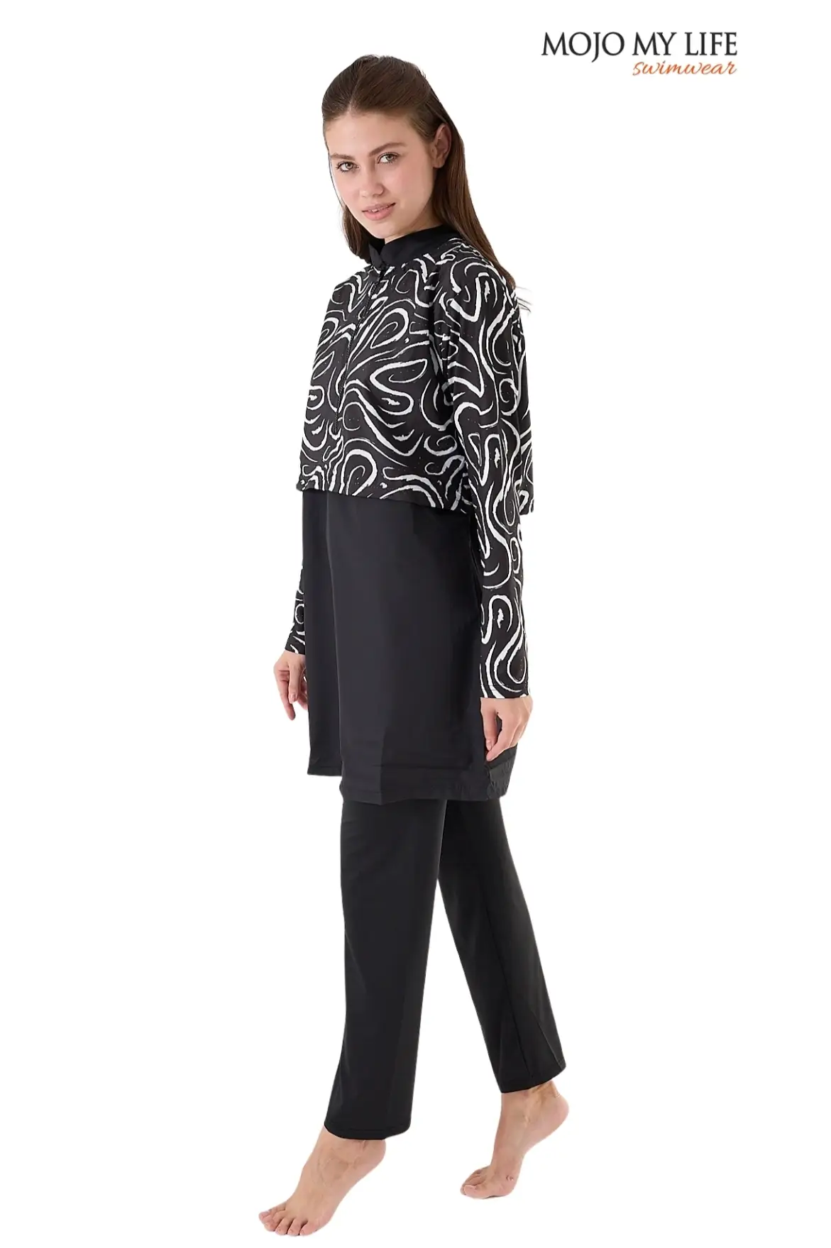 Croplu tesettür mayo modelinde tüm beden seçeneklerimiz aynı kalite standartlarında üretilmektedir.